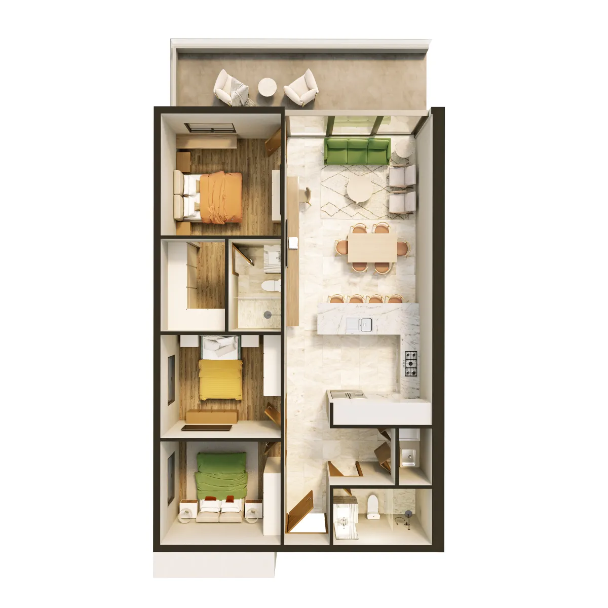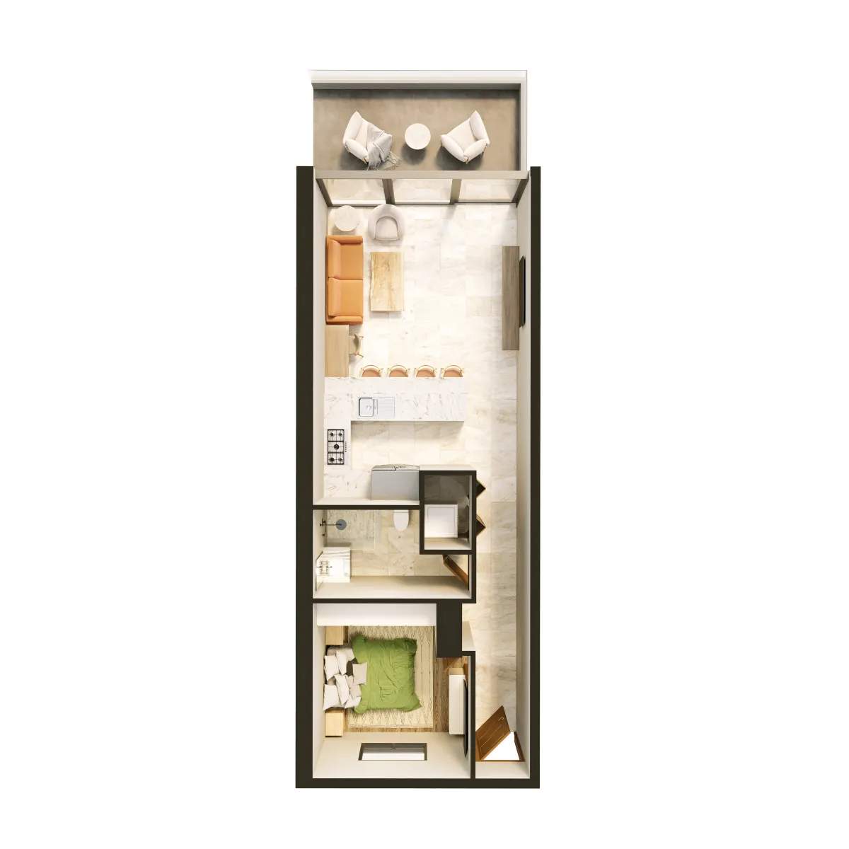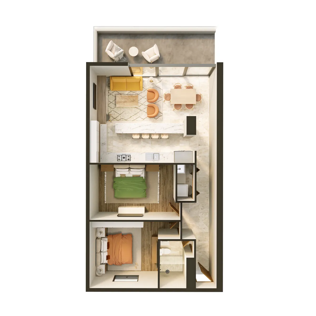 Departamento con un área interior aproximada a los 60m, más el área de terraza.